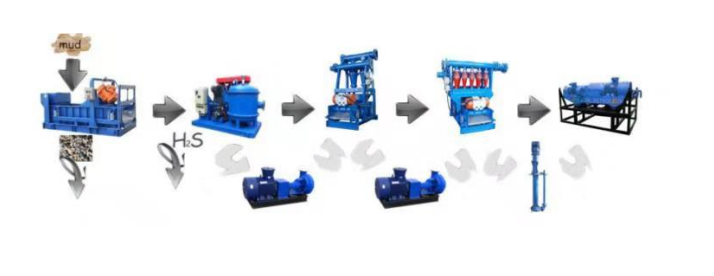 2、鉆井泥漿不落地固控二級;由于鉆井過程中,井下氣體混入鉆井液中后,鉆井液密度發(fā)生改變,影響鉆井液攜帶泥沙的能力。此時(shí),可通過除氣倉上的除氣器將鉆井液中有害氣體排除,恢復(fù)鉆井液密度,穩(wěn)定鉆井液粘度,完成鉆井液二級凈化處理。