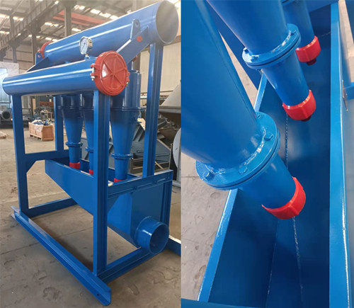 MD系列除砂器為定制化產(chǎn)品,本次我們根據(jù)客戶(hù)了需求,定制了3個(gè)旋流器,在河水除砂過(guò)程中能夠?qū)⑽锪现蓄w粒直徑為40-100μm的固相顆粒分離出來(lái),將泥沙完成初步篩分和清潔,再去進(jìn)行下一步處理,更好的滿(mǎn)足客戶(hù)現(xiàn)場(chǎng)作業(yè)場(chǎng)地小,物料含沙量高,處理量要求較大。該款產(chǎn)品可以根據(jù)客戶(hù)現(xiàn)場(chǎng)物料的屬性定制旋流器的材質(zhì),定制材質(zhì)有:高鉻鑄鐵、聚氨酯、耐磨橡膠、耐磨陶瓷、不銹鋼等。