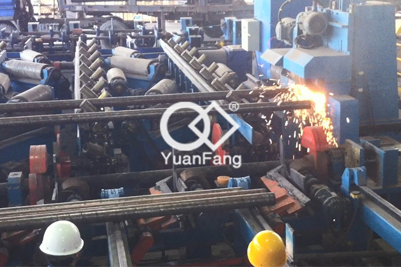 適用于中、小規(guī)格棒料倒角。砂輪倒棱機(jī)(又稱去毛刺機(jī))是去除熱軋棒材兩端毛刺的專用設(shè)備,能大大的提高棒材端部質(zhì)量, 并為精整探傷工藝提供可靠的保證。